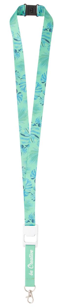 Polyesterový lanyard na zákazku s kovovou karabínkou a otváračom na fľaše. Sublimačná potlač na oboch stranách. Min. mn .: 100 ks.
