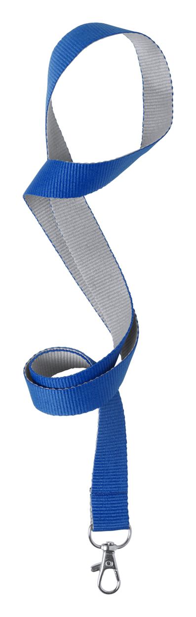 Dvojfarebný polyesterový lanyard s kovovou karabínkou.